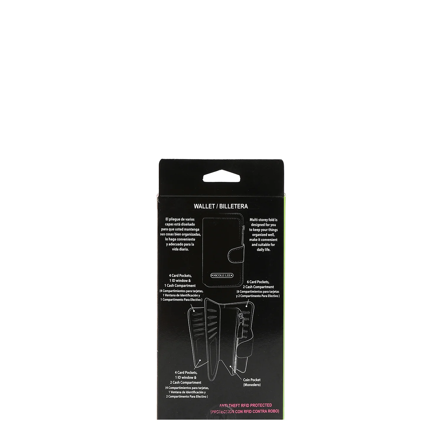 - ΤΕΧΝΟΛΟΓΙΑ ΑΠΟΚΛΕΙΣΜΟΥ ΑΝΤΙ ΚΛΟΠΗΣ RFID (Ταυτότητα ραδιοσυχνοτήτων): Η καταπολέμηση της κλοπής ταυτότητας ξεκινά από το πορτοφόλι σας. Η τεχνολογία RFID-Blocking εμποδίζει τα σήματα της συσκευής ανάγνωσης να διεισδύσουν στο πορτοφόλι σας για να διατηρήσετε το περιεχόμενό σας ασφαλές.