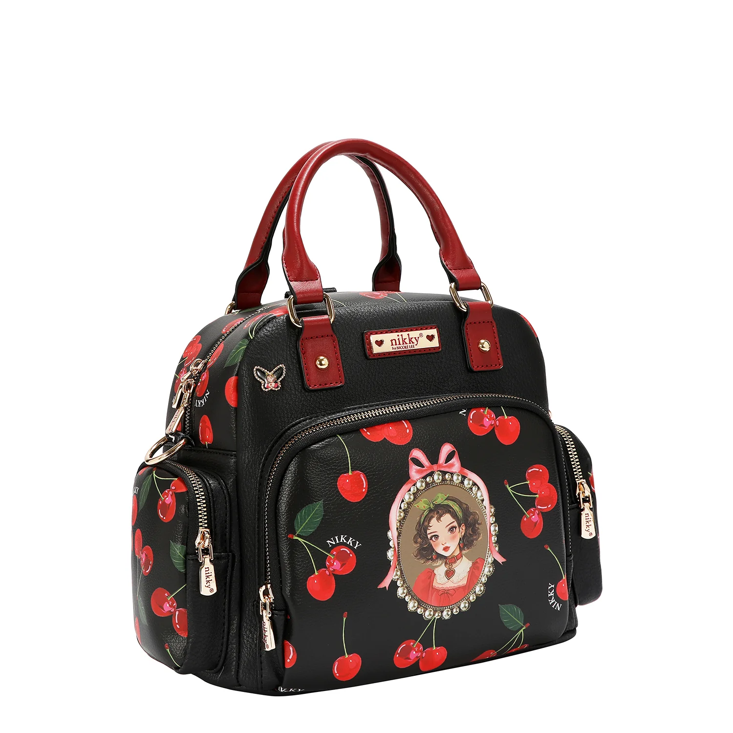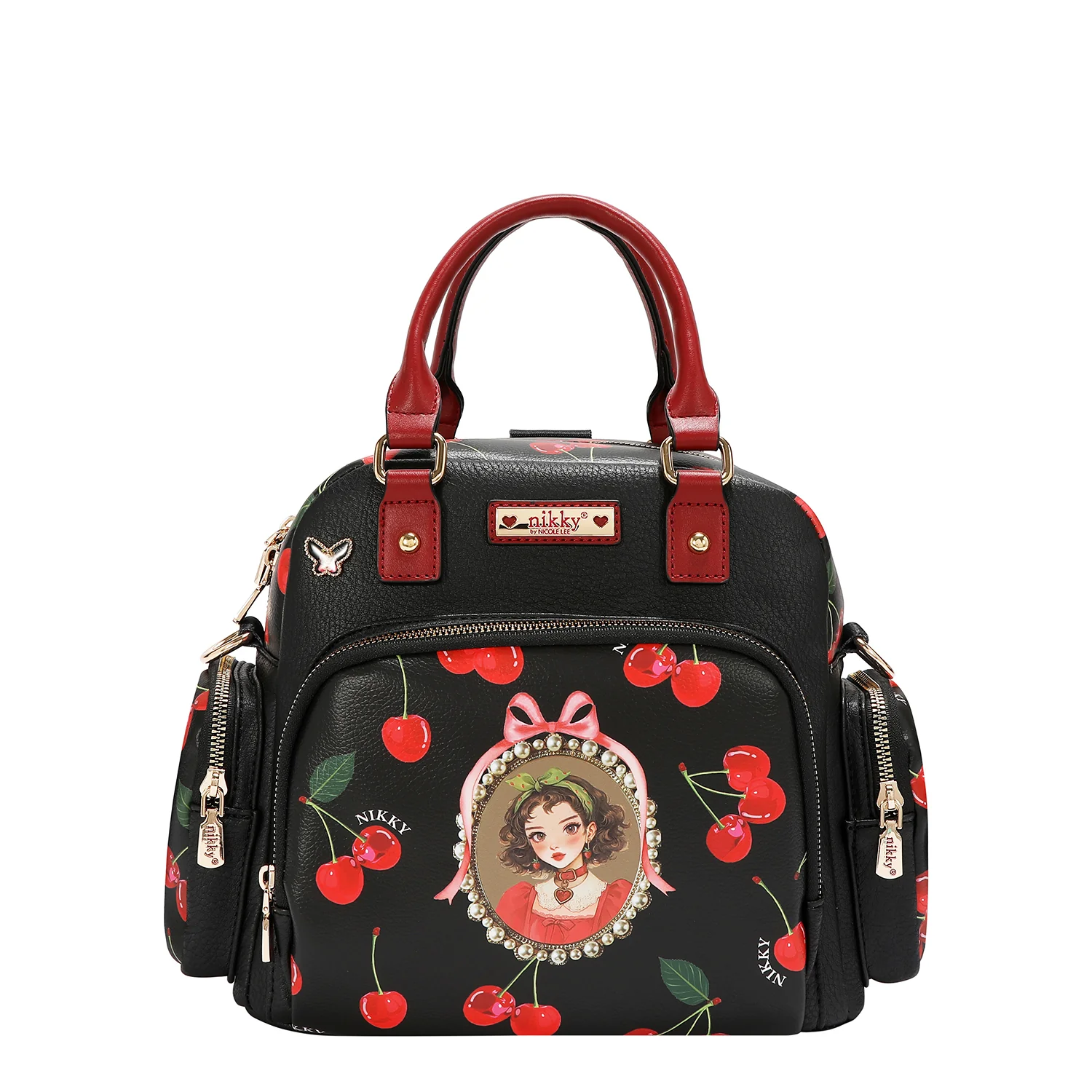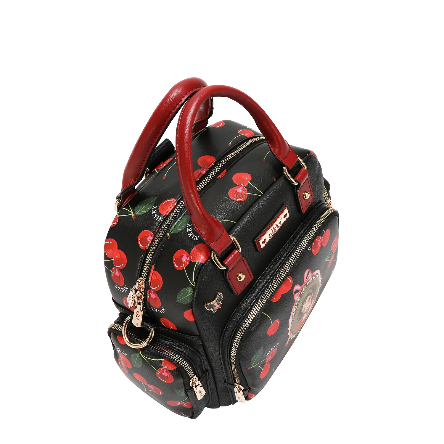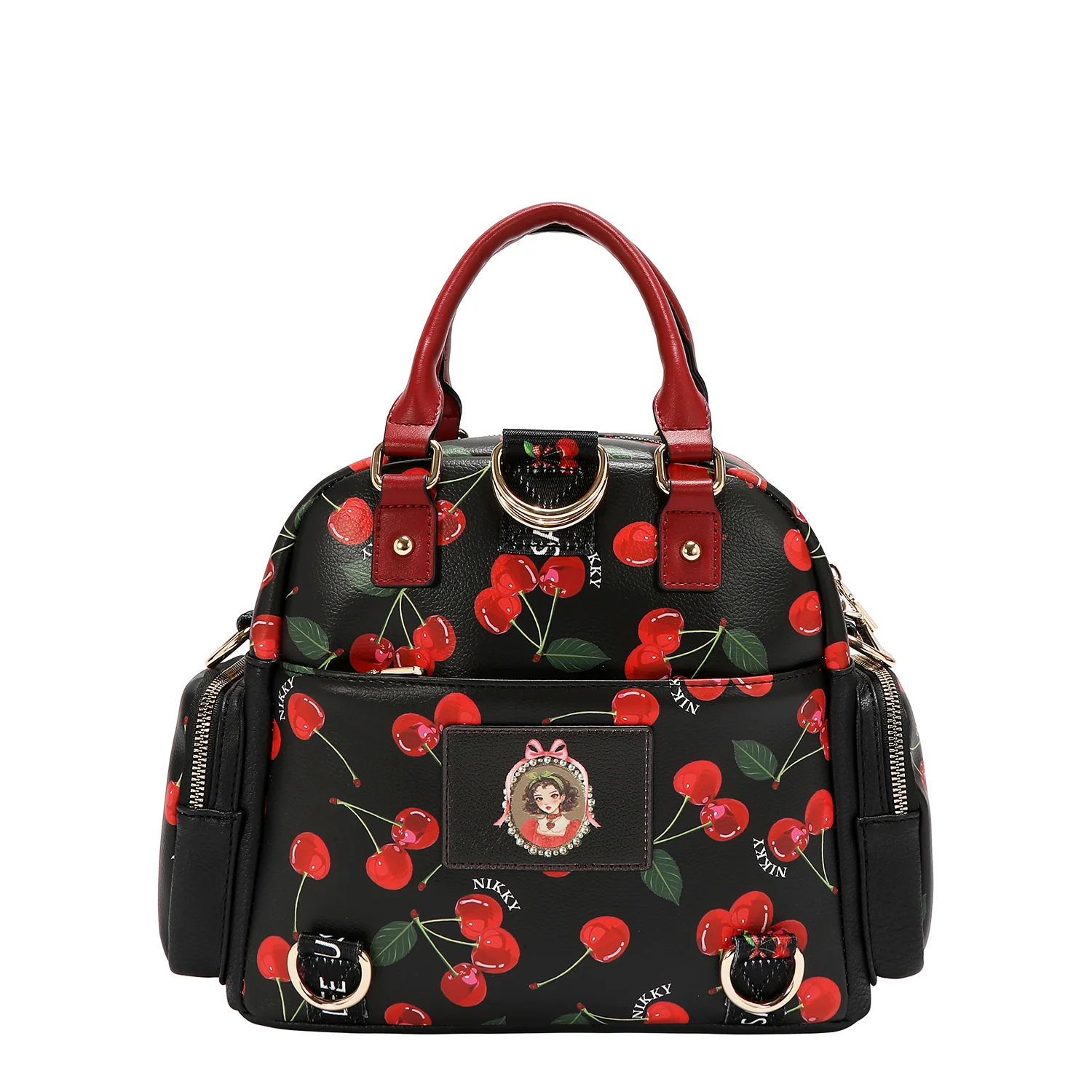 Γνωρίστε τη μετατρέψιμη τσάντα Cherry Lips Black (χειρός / σακίδιο πλάτης). Με κομψό σχέδιο με κεράσια σε μαύρο φόντο και ευέλικτους ιμάντες, μπορείτε να τη μετατρέπετε εύκολα από τσάντα χειρός σε σακίδιο πλάτης, διατηρώντας το look σας δυναμικό, στιλάτο και αβίαστα μοντέρνο.