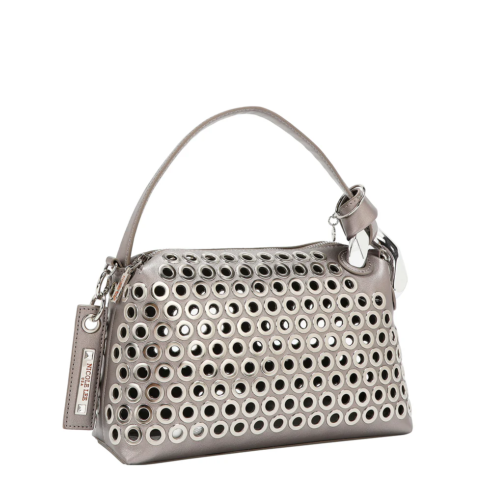 Διαθέτει επίπεδες, χαλαρές διπλές λαβές με αυθεντικό στρογγυλό μπρελόκ Nicole Lee.