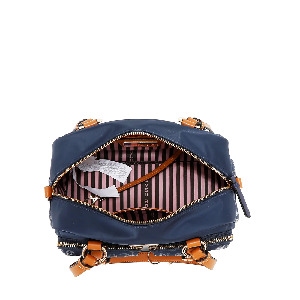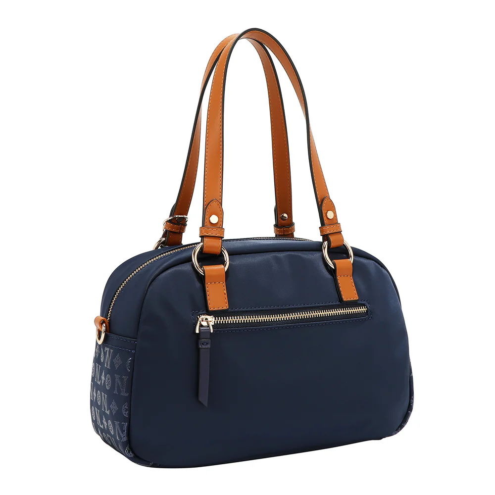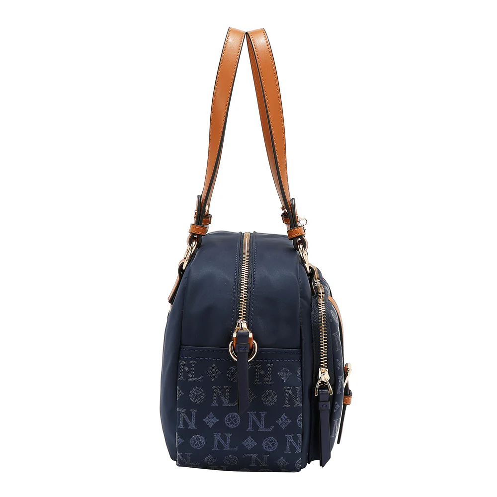 Αναβαθμίστε την καθημερινότητά σας με μια πινελιά λάμψης, η τσάντα Monogram Logo Boston προσφέρει κομψό νάιλον στυλ και την χαρακτηριστική πινελιά NL.