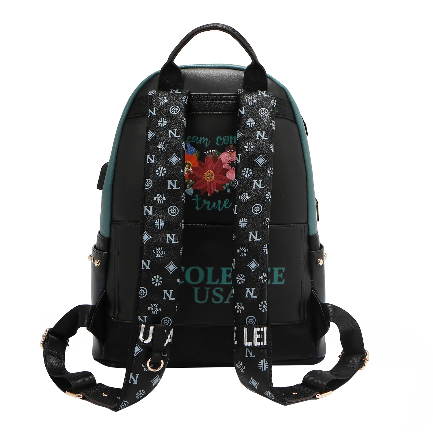LARGE USB FASHION BACKPACK WITH CHARGING PORT AND POUCH